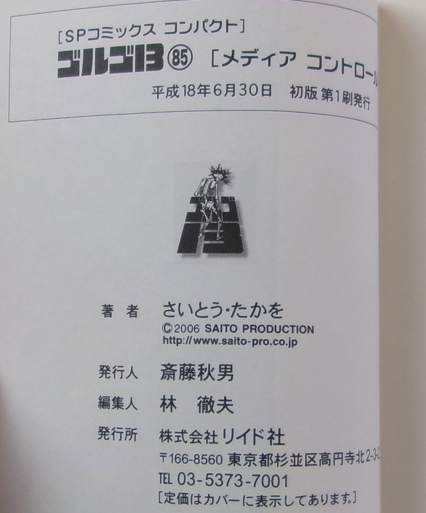 □ ゴルゴ13 (85) メディアコントロール[さいとう・たかを] SPコミックス コンパクト/2006年 初版/リイド社| 出价者 | 信用 | 价格 | 时间 |
