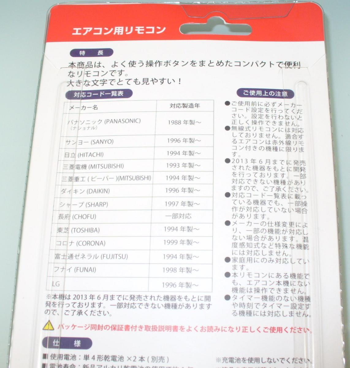 | 品名 | ★未使用品*大画面 エアコン用リモコン(OAR-BK12)商品番号 07-8099*見やすいバックライト ★主要 13メーカー対応 ★未使用品ですが、パッケージに汚れ、痛みなどが多少ございます。 細かいことを気にになさる方のご入札をお断りいたします。 ★未使用のため、万が一、破損・不良品の場合、こちらでの責任は負いかねます。 直接、メーカーへお問い合わせするようにお願いいたします。 |