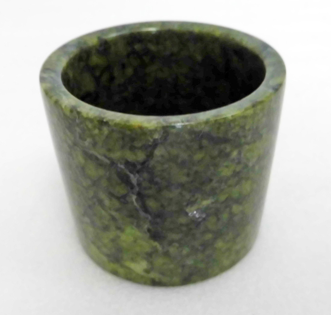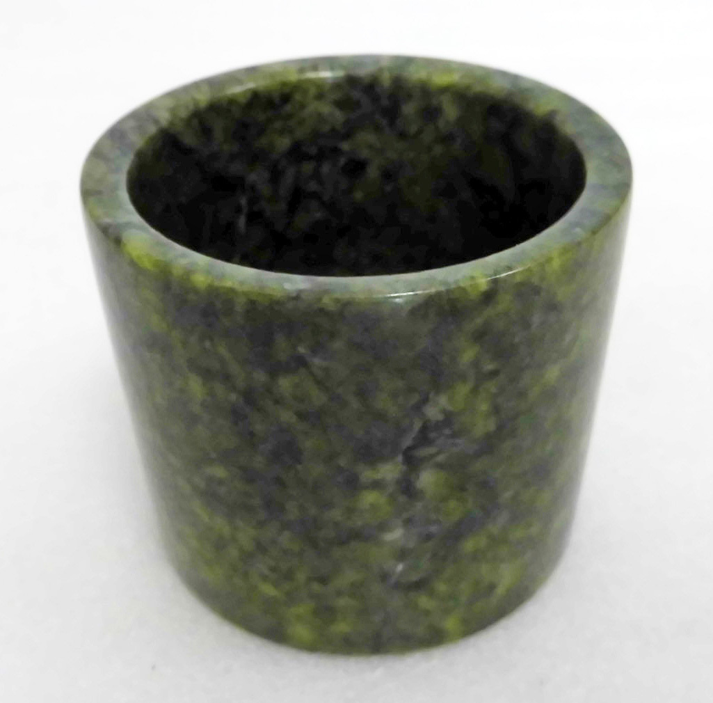 | 品名:碧玉 丸巾筒 花入 茶道具・煎茶道具 作家:林 白祥 寸法:Φ≒5㎝ 丈≒4.3㎝ ≒85g 状態:一個の結晶体から刳り貫いた逸品です。無疵、極美品です。 できるだけ説明いたしますが、写真でご判断ください。写真の色の誤差はご容赦ください 出品者の主観です:食卓のお供としてもお楽しみください。 | ||