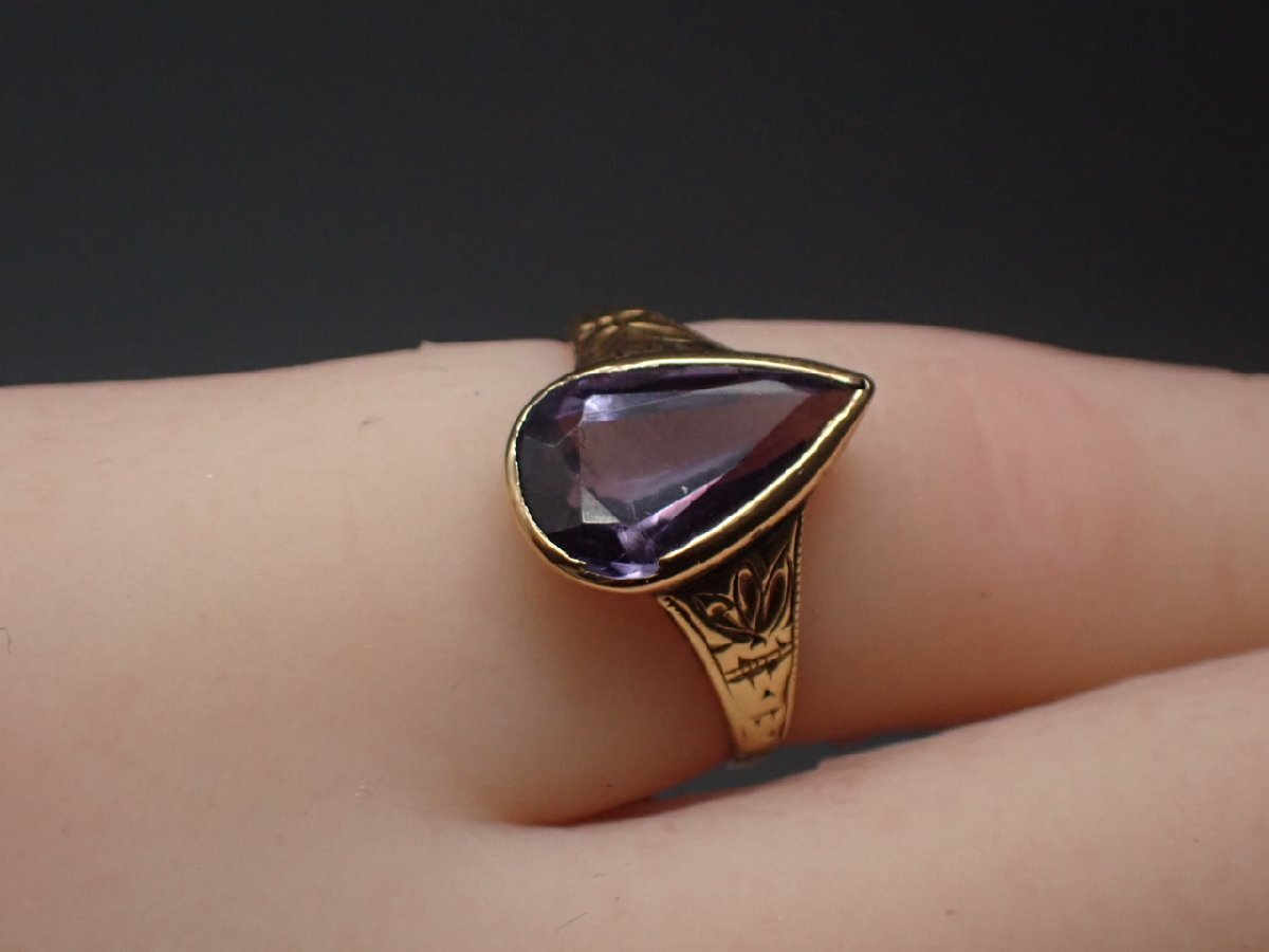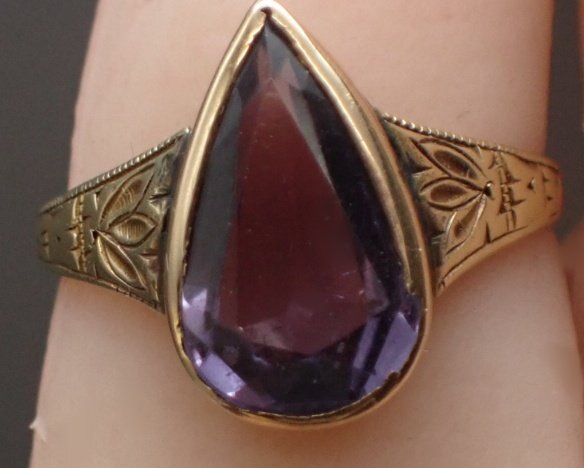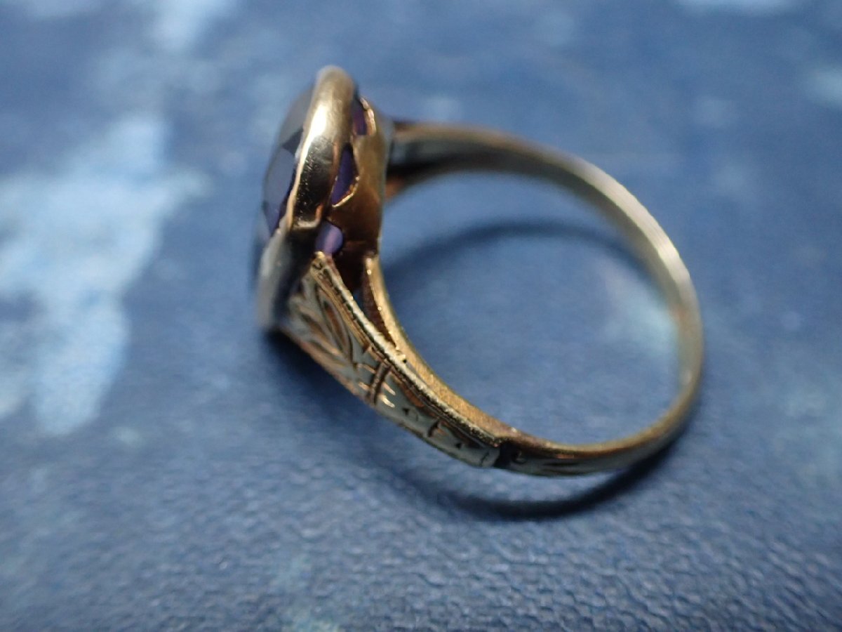 | 商品詳細【アンティーク】K14 彫金リング 7号 色石 | |