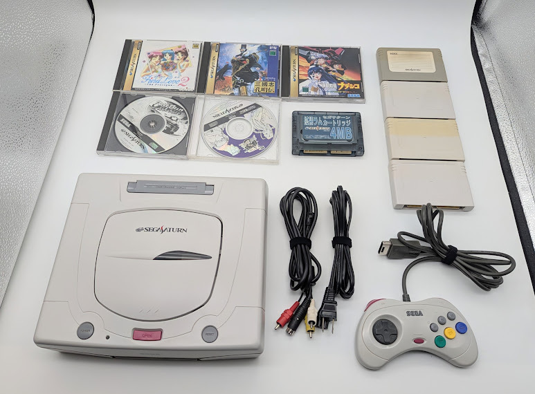 | 【送料無料/ボタン電池交換済/動作確認・簡易清掃済】セガサターン本体+付属品+ソフト アウトラン等 すぐに遊べるセット |