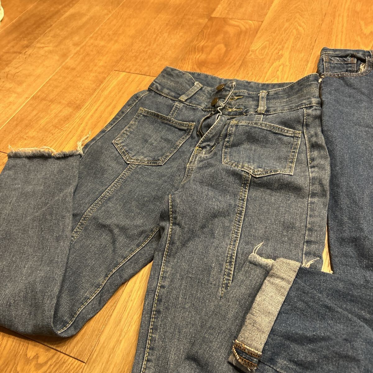 ダークブルーのスキニーデニム、ボタンフライとダメージ加工付き。| 出价者 | 信用 | 价格 | 时间 |