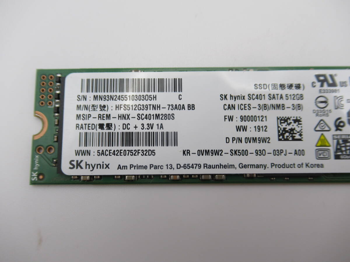 | ★商品説明★ | SKhynix SC401 SSD M.2 2280 SATA 512GB 1枚 中古 動作確認済みです。 写真は現物です。写真にもご確認の上ご入札下さい。 中古品ですので使用感が御座います。動作確認済みですが、相性は保証いたしません。 適用機種はよくご確認した上で、ご入札くださいませ。 |