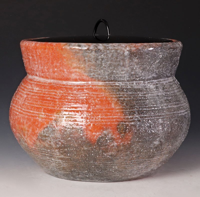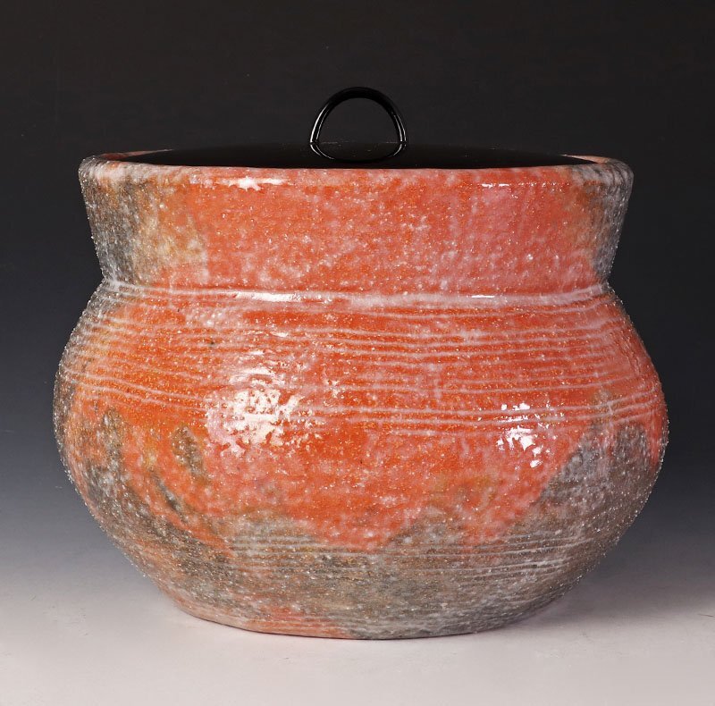 赤と黒の織り成す景色が美しい水指です。 ★商品は二代小川長楽の作品である事を保証致します。 |