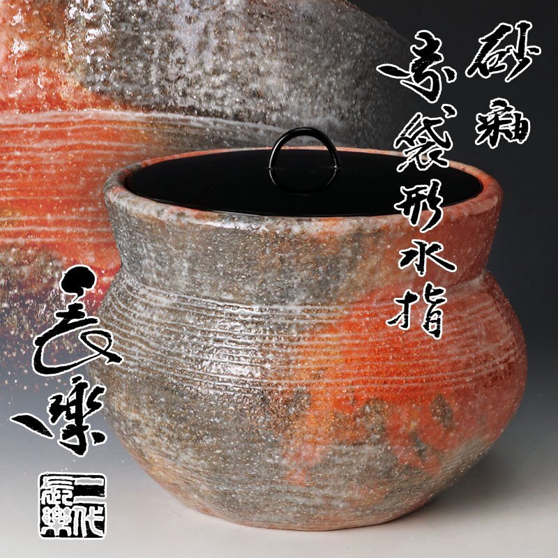 | 【古美味】二代小川長楽 砂釉赤袋形水指 茶道具 保証品 |