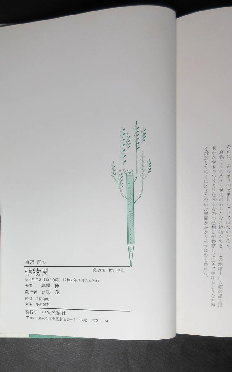 ●真鍋博/署名入り、 『真鍋博の植物園』、中央公論社刊、解説:加藤秀俊、昭和51年、初版・カバー、ビニルカバー、帯付、約21.5×15.5cm