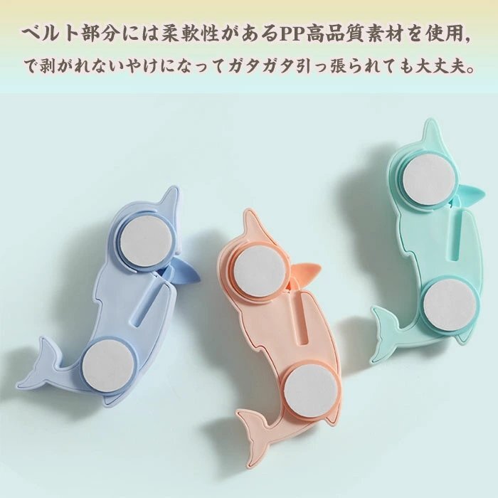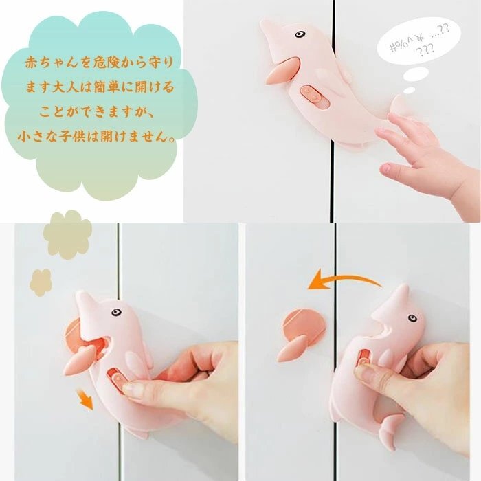 【イルカですのデザイン】 ロック部分は小さなお子様も嬉しい可愛いイルカですの形。カラーも豊富なので、インテリアに合った色味も選べます。