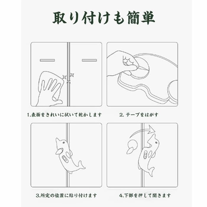 【取り付けも簡単】 中央部分を押しながらフックを持ちあげれば片手でも簡単に開けられます。裏面に強力な両面テープがついているので、食器棚や冷蔵庫、物置など様々な場所で使用することが可能です。
