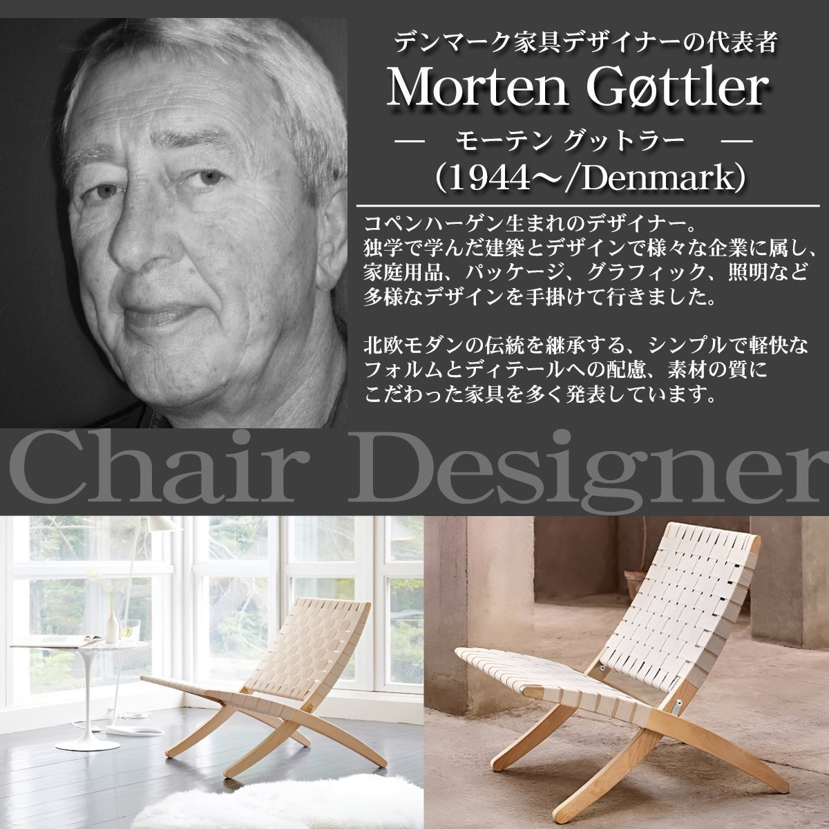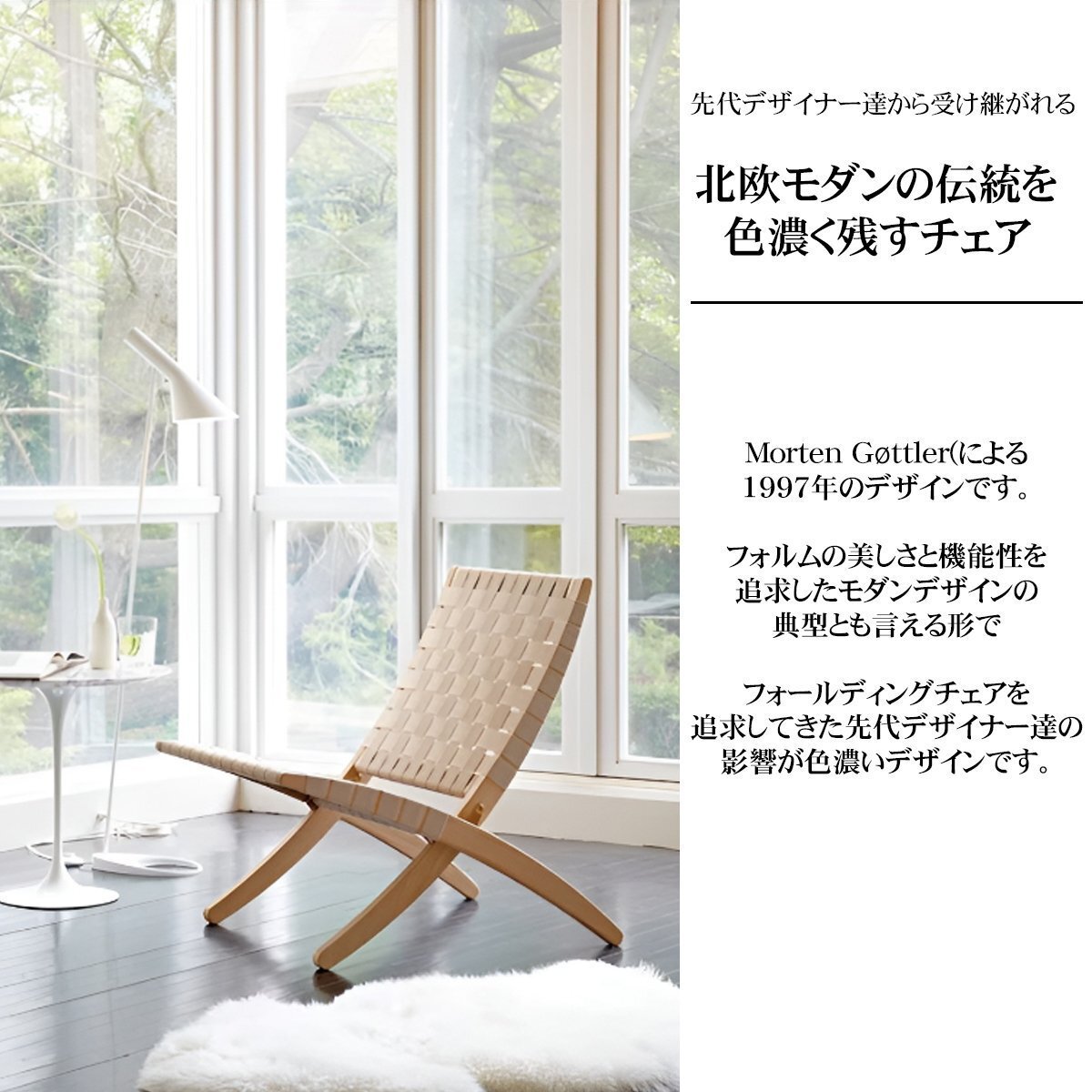 ![]() 「MG501 Cuba Chair(キューバチェア)」は、木材への深い造詣で知られるデンマークのデザイナー、 Morten Gottler(モーテン・グットラー)による1997年のデザインです。 フォルムの美しさと機能性を追求したモダンデザインの典型で、 フォールディングチェア(折りたたみ式の椅子)を追求してきた先代デザイナーたちの 影響が色濃く出ているデザインと言えます。 座面に用いられているコットン製のウェビングテープは 見た目の美しさ・クッション性にすぐれ、体を優しくサポートし、長く使うほど心地良さを実感出来ます。 通気性も優れており、一年を通して快適にお使い頂けます。 軽量で折りたたみ式のMG501 Cuba Chairは使用しない時でもコンパクトに折り畳んで収納可能。 折り畳んで壁に立て掛けているだけでも様になるデザイン美。 デニッシュモダンとディティールの美しさを感じさせるこだわりの一脚です。 シンプルなフォルムと長く使うことのできる素材、 優れたクラフトマンシップという“北欧モダンの伝統” を継承した、見た目にも美しいフォールディングチェア。 その洗練されたデザインは、木材のあたたかみが感じられます。 日本の住宅サイズにもマッチし、使いやすさと見た目の美しさを兼ね備えています。 フォルムとシンプルな美しさを追求するグットラーならではの「MG501 Cuba Chair」 使用感とディテールにもこだわったチェアです。 デザイナー:モーテン・グットラー/Morten Gottler 材質 座面:ウェービングテープ(コットン) フレーム:無垢材 サイズ(約):幅61cm×奥行き89cm×高さ75cm 重量(約):15kg |