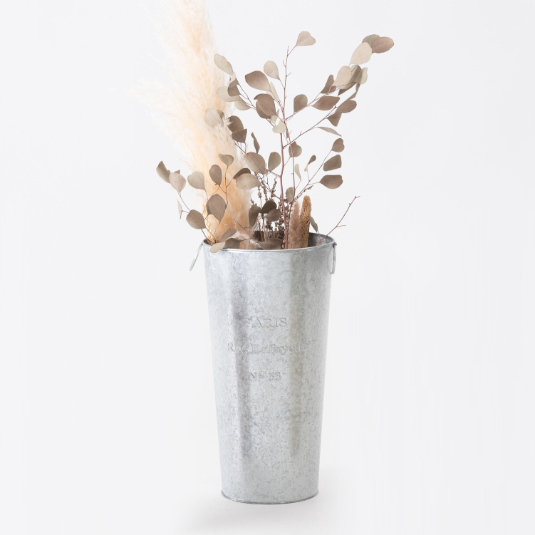 | 凛とした佇まいに、静かな存在感を宿した、フランスアンティークデザインの刻印ブリキバケツ傘立て 中央にはPARIS RUE LAFAYETTEの文字が型押しされています。 PARIS RUE LAFAYETTEの文字はパリ ラファイエット通りとお名前となります。 ラファイエット通りはフォーブルサンマルタン通りとフォーブルポワソンニエール通りの間にあるパリの9区と10区にある通りの名でパリジャンやパリジェンヌのカルチャーが受けつかれている通りとなります。 イギリス人Rachel Ashwellさんが提唱したシャビーシックインテリアは、シャビー(古びた)でシック(おしゃれで上品な)という英語の表現から来ています。 古びたアンティークの家具や雑貨を使って、ナチュラルな雰囲気を大切にしながら、大人らしい上品なインテリアを作り上げていく、というこのスタイルは、90年代から始まり現代とても人気があるスタイルです。 ご利用では、シャビーシックな雰囲気を楽しむ傘立てとしてや、空間インテリアとして、観葉植物やお花を飾るおしゃれなフラワーベースとしてなど、アンティーク空間演出の雰囲気作りとしてお楽しみ頂けるお品となります。 |