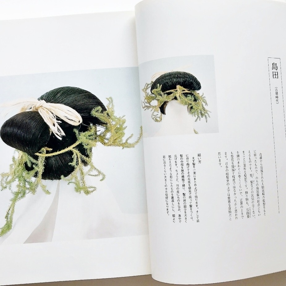 それが、今回計らずも紫紅社の手で実現することになったのである。小形鬘五十五点に、モデル撮影十二枚を添えて、私共の机上にのる日が来たのである。私はこの方面の研究のため心から嬉しいと思うのである。おそらく、それによって、日本の髪の美を、立体的にとらえて、日本の髪の美と、先人の技法の巧妙さに驚きを感じられる方が多いと思う。