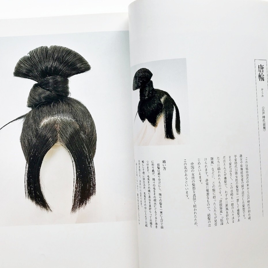 幸い南女史は、教材として、小形鬘を使ってじつに巧妙正確な結髪標本を何十種も作って居られる。それこそ微細にわたる点まで驚くほどリアルに、そして髪飾りまで同じスケールにミニチュア化したものが添えられているのである。しかし、これとて、い一々女史の手作りであって、もちろん量産化された商品ではないせめて、この小形鬘にとりあげられた結髪だけでも、現在の写真技術で撮影して、入手しやすい形で出版していただけると、日本風俗史の研究資料としてどれだけ斯界に裨益すること多いだろうかとひそかに望んで来た。