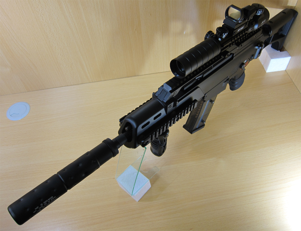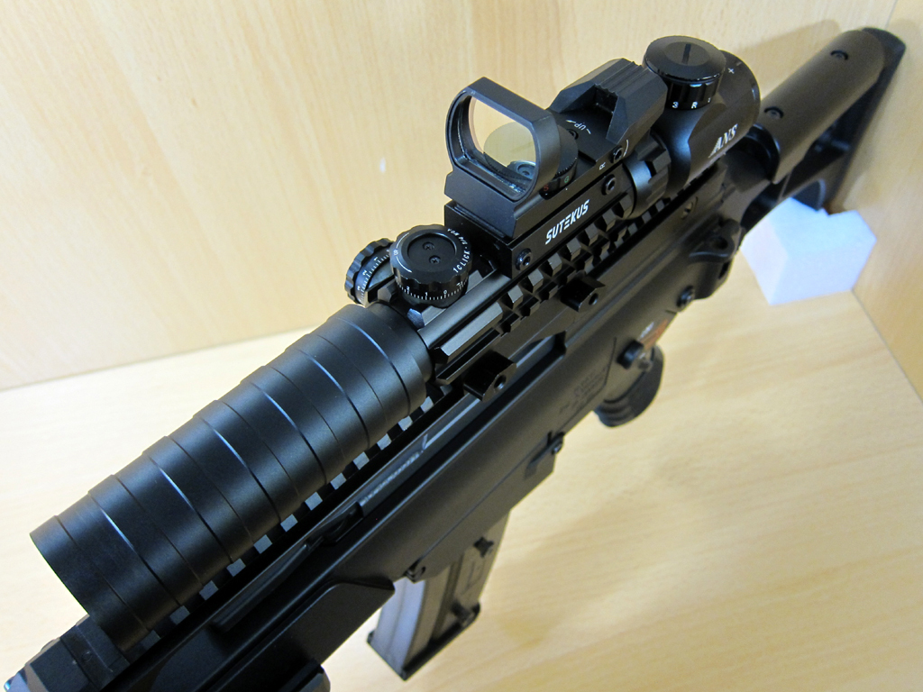 スナイパー仕様として、3倍から9倍率までのズームスコープに、オープンドットサイト(リフレックスサイト)を