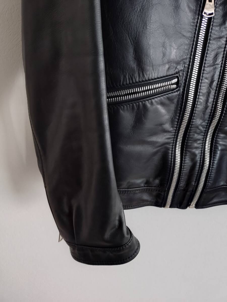 | ほぼ使用感なし。とても重厚感(重さ1.4kg)のあるライダースの革ジャンです。 本革は今では高すぎで手が出せない商品ですが、10年くらい前に買ったときで50万円でした。 ほとんど未使用で保管状態もとても良いです。 |