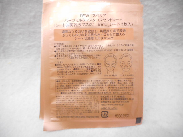 | ☆DEW スペリア パーツミルクマスクコンセントレート シート状美容液マスク 12枚入り コスメ マスク 未使用 箱入り |