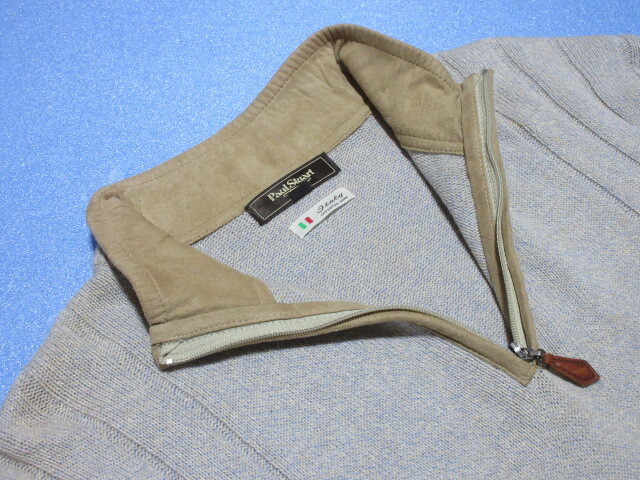 Paul Stuart(ポール スチュアート)のハーフZipセーターです。襟やZip部の皮の箇所がいいアクセントになっています!糸はイタリア製です!