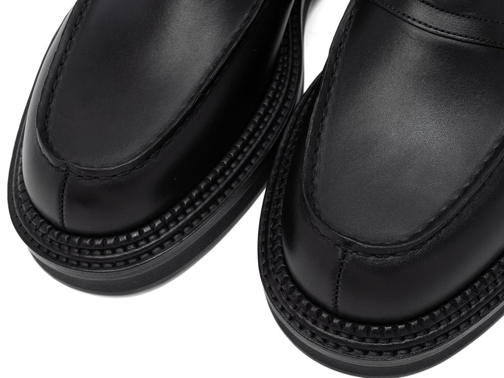 フランス革靴メーカーの名門として100年以上の歴史を持つJ.M. ウエストンと、阿部千登勢のデザインによるベーシックでクラシカルなアイテムを崩し変化させながら、独特のエレガンスを放つ「sacai」とのコラボレーションによって誕生したローファー「41-EYH-146-0」2025年モデルです。 sacaiの創造性のもとJ.M. WESTONの #180シグニチャーローファーを再構築。ローファーとしても踵を踏んでサボのようにも履ける構造は、J.M. WESTONのトリプルソールからインスパイアされたマイクロセルラーラバーのミッドソールは踵周りに大きく張り出し、sacaiらしいディテールとしてこのコラボレーションの象徴となっています。