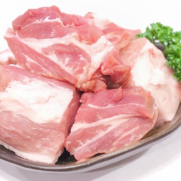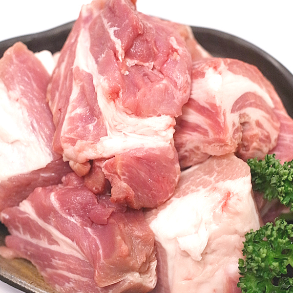 ホエイ豚:牛乳からチーズを作る時に副産物としてできる"ホエイ(乳清)"を飲ませて育てた豚。風味のよさ、やわらかさが特徴です。 どんな用途にも使いやすい豚の切落しです。カレーなど煮込んでもよし、焼いても美味しい万能食材です。 |