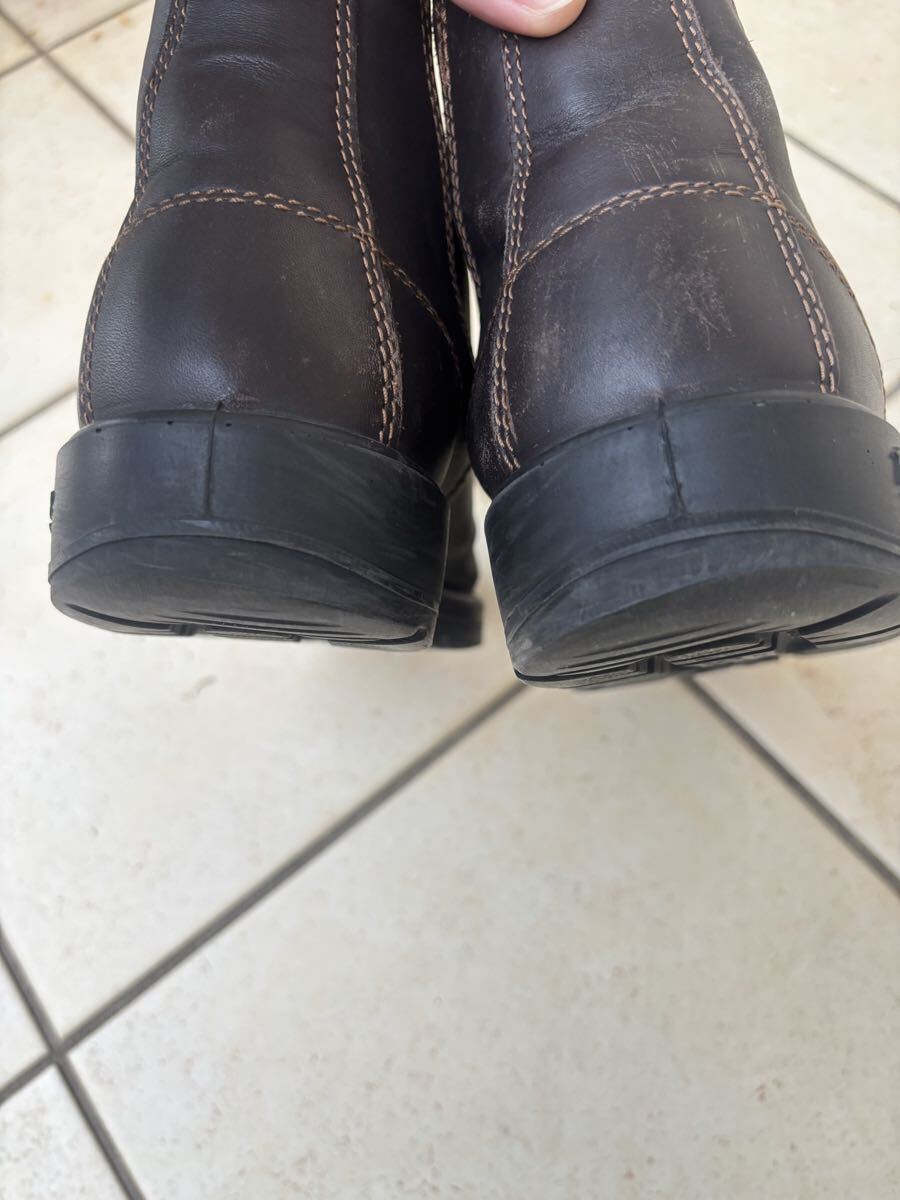ブランドストーンのサイドゴアブーツUK8。一般的な足サイズですと27cm〜27.5cm前後でしょうか?一応公式サイズだと26.5cmのはずですが、ブランドストーンは少し大きめな気がします。少し茶色っぽいブラック。使用に伴う傷や使用感ありますが、ソールの減りも問題ないと思います。状態やモデル名に間違いあるかもしれませんので、詳細や状態は画像にてご確認ください。気になる点はご質問ください。あくまで素人保管の中古靴にご理解のある方のみノークレームノーリターンノーキャンセルでお願いします。新規の方評価の悪い方は削除いたしますので入札はお控えください。迅速なお取引、ご連絡ができない方は落札者都合にて即時削除いたしますのでご了承の上、入札をお願いいたします。