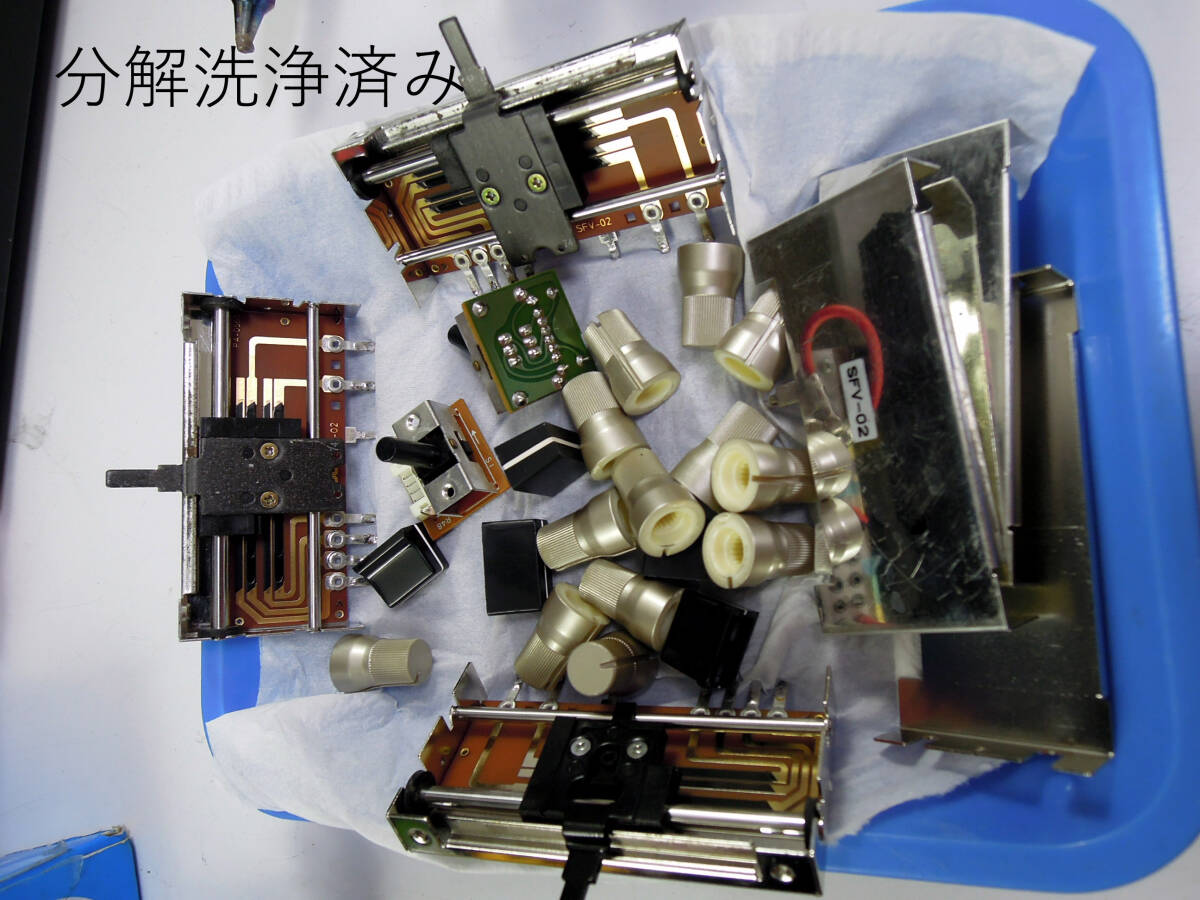 | 商品説明 | Vestax PMC-05Pro2 メンテ済 ベスタクス おなじみのスクラッチミキサーです。 状態は写真にて判断してください、 動作確認動画 動作問題ありません 各スライドフェーダー分解内部オーバーホール、クリーニングしておきましたので動作も良好です。 カットラグ短くしてありますので、切れもとてもいいです! フェーダーの部品取りとしても十分だと思います。 パネルネジ錆びにくいステンレスのものに交換しました ファーダーのオイルも低粘度のものさしておきましたのでウルトラスムーズです! クレ556やDeoxITなどは使っていないのでご安心ください。 よく、556など差し込む方もいるようですが故障の原因となります (オークションの出品物で結構初期不良回避のために556やケイグDeoxITなどを吹き付けて出品されてる方も多いようですのでご注意ください。 出品物はスプレーなど使っておりませんので安心してください Vestax PMC-05Pro2-----------1台 Vestax PMC-05Pro2説明書-----1冊 新品電源アダプター(非純正)----1個 |