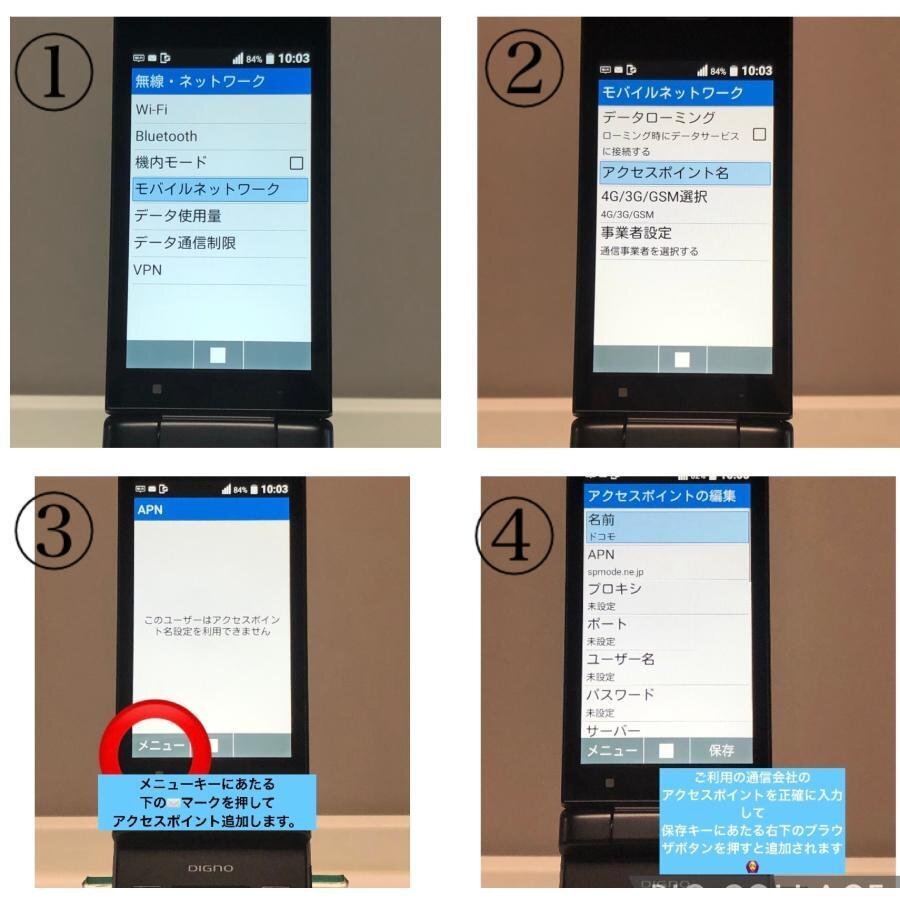 詳細設定 APN(アクセスポイント)設定はご利用の通信会社にてご確認ください。