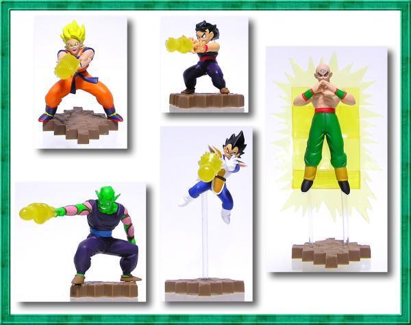 | 種類 | ●スーパーサイヤ人 孫悟空 [約6.5cm] ●ベジータ [約8.8cm] ●ピッコロ [約5.6cm] ●孫悟飯 [約4.8cm] ●天津飯 [約12cm] |