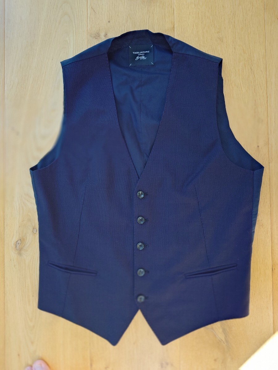 ★着用回数1回のみ/ほぼ新品未使用品★ TAGLIATORE タリアトーレ ジレ ベスト 濃紺系 ビームス購入 イタリア製 48 です。ビームスジャパン新宿店で35,000円ほどで購入し、1回だけドレスシャツの上に着用後に、コロナでスーツを着る機会も減り、結果として自宅のクローゼットに保管してました。程度としては、ほぼ新品未使用の状態ですが、神経質な方のご入札はご遠慮ください。イタリアタリアトーレならではの繊細、且つ、ステキな発色の色味ですので、当方記載のカラー系に関してはあくまでも参考で捉えて、最終的なカラーと色味は写真でご判断ください。実寸は、身幅98センチ、着丈67センチです(素人採寸の為、若干の誤差はご了承ください)配送会社起因の未着などのトラブルを避けるために、追跡可能なレターパックプラスにて発送しますので、ご安心ください。