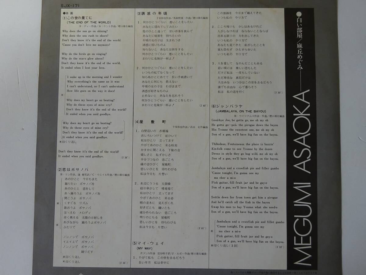 used★白ラベル★LP / 麻丘めぐみ『白い部屋』 / 筒美京平 漣健児 バリー・マン キャロル・キング / 昭和歌謡【歌詞カード/SJX-171】