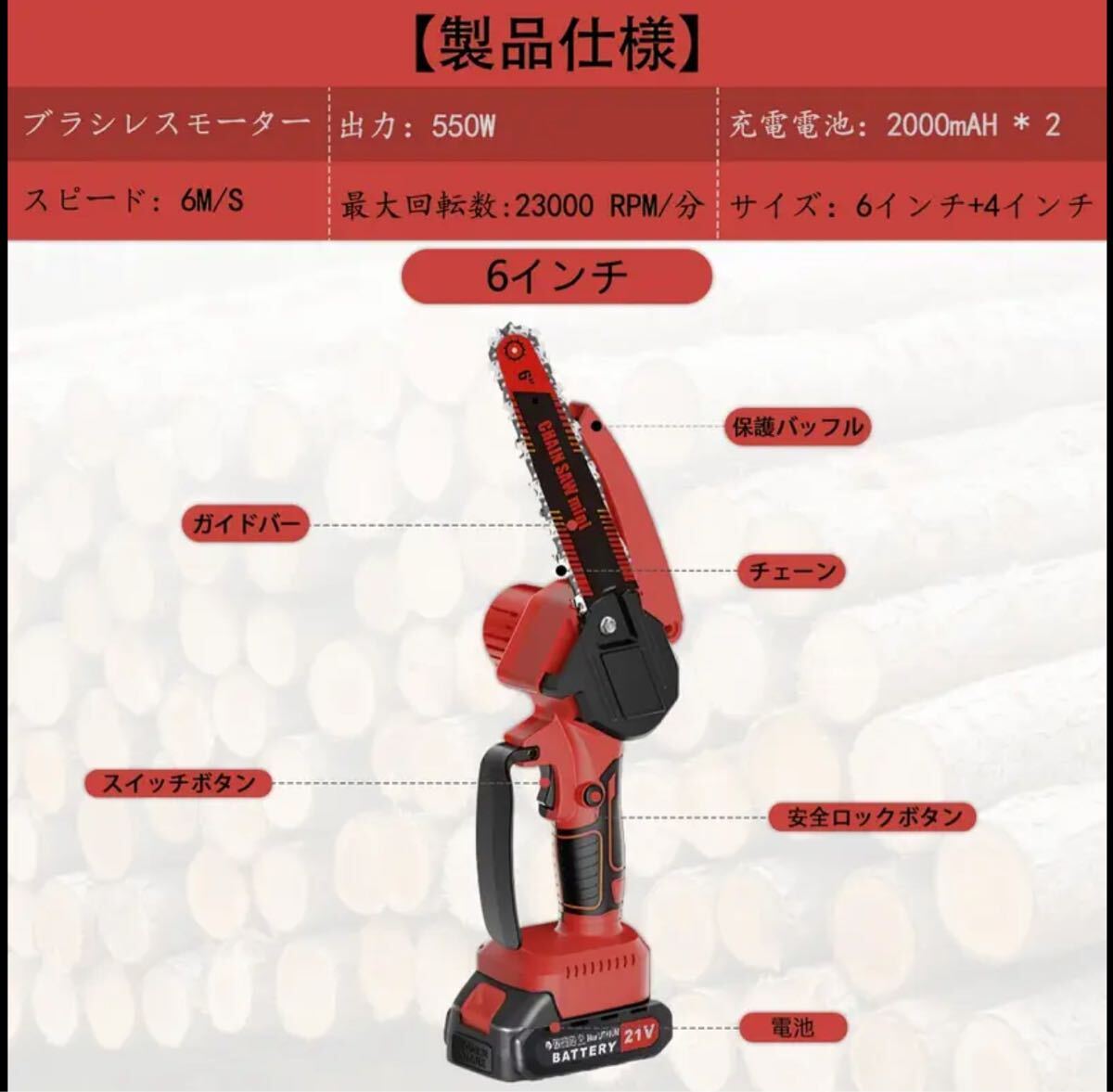電動コードレスチェーンソー、充電式リチウムイオンバッテリー(2個)付きポータブルハンドヘルド電気チェーンソー、オイルキャニスター付き、樹木・庭園・家庭用ブラシレスモーター、ガーデニング・木工・園芸・伐採・薪用の剪定ソー