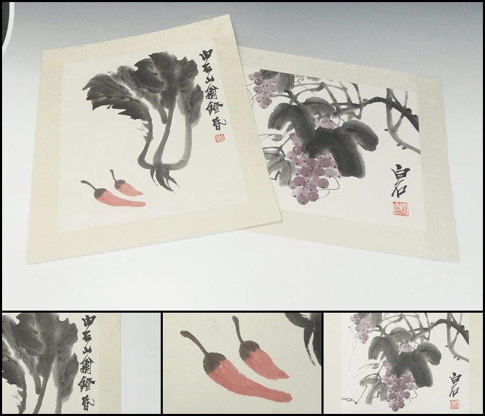 ●ご覧頂きまして誠にありがとうございます。 今回の出品は【251128-9】【模写】斉白石 水墨画 二点 「大白菜と唐辛子」「葡萄」中国画家 唐物です。 時代なりの汚れや若干くすみ、若干着色汚れなどはありますので画像にてご確認下さい。 ※当商品の大きさ、形状及び梱包上の都合により他商品との同梱配送・「まとめて取引」にはご対応致しかねます。 また、複数日にわたる取り置きにもご対応致しかねますので、複数商品をご落札頂いた場合でも「単品で取引する」をご選択の上お手続きいただきますようお願いいたします。 予めご了承下さいますよう宜しくお願い致します。 この機会に是非お手元にお納め下さい。 【サイズ】 2枚 画寸 縦:約37.7cm/30.6cm、横:約31.3cm/36.7cm ※手計測ですので若干の誤差はございます。 予めご理解をいただいた上でご入札ください。 ※留意点 当方では美術品の出品において、特定の作者の作品と記載、もしくは署名落款がある場合、【真作】または【模写】と記載しております。 タイトルにございます分類は下記の通りとなります。 ご確認の上、十分にご検討いただきご入札をお願い申し上げます。 【真作】【真筆】真作・真筆作品。本物であると断定できる作品。 ※【真作】【真筆】と表記のある商品につきまして、万が一所定鑑定機関にて真作でないと鑑定された場合は内容証明書を提示頂ければ落札代金をご返金の上ご返品に応じさせていただきます(落札日より60日以内)。 鑑定費用その他諸経費等は落札者様ご自身のご負担となりますので予めご了承下さい。 【模写】印刷や工芸等ではなく、人が書いた作品。 わずかでも真作ではないと疑いのある作品、及び作者不明の作品は全て模写と表記いたします。 また、所定の鑑定機関の無い作品、当方で判断出来ない場合も含まれます。 【印刷】【工芸】印刷もしくは工芸印刷の作品 【版画】【拓本】木版画・水印版画・リトグラフ・拓本・石刷の作品 上記に該当しない作品(署名落款のないもの)につきましては、特に表記はございません。 |