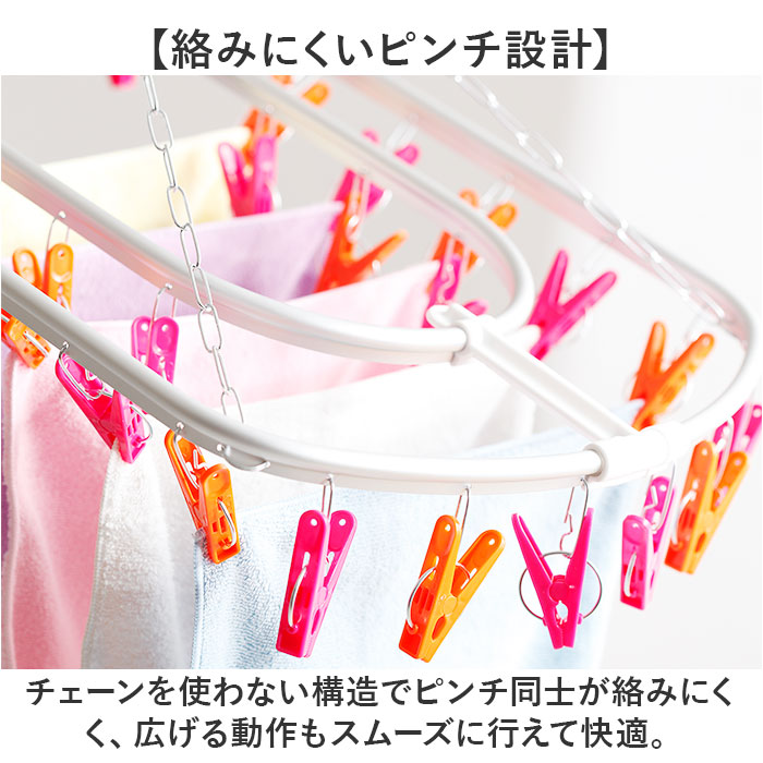 | 商品説明 | ・・【絡みにくいピンチで快適!】 ・毎日のお洗濯をもっとスムーズにしてくれる「アルミジャンボ角ハンガー44ピンチ」。 ・【軽くて丈夫なアルミ構造】 ・軽量で扱いやすいアルミフレームが持ち運びやすさと耐久性を両立。使い勝手抜群の角ハンガー。 ・【絡みにくいピンチ設計】 ・チェーンを使わない構造でピンチ同士が絡みにくく、広げる動作もスムーズに行えて快適。 ・【隠して干せる二重配置】 ・内側のピンチに下着を干し、外側にタオルを掛ければ、目隠しにもなる干し方が可能! ・【リブ入りで強度アップ】 ・リブ入りフレームがたわみやねじれをしっかり抑えてくれる◎長期間使いやすい頼れる耐久性。 ・【しっかり掴む高品質ピンチ】 ・紫外線に強く、衣類をしっかりホールドするピンチ。風の日でも安定して使える安心のつまみ力。 ・【取替え簡単なクリップ式】 ・ピンチはクリップ式で簡単に交換でき、劣化してもサッと付け替えられる便利さが嬉しいポイント ・【折りたためる省スペース収納】 ・使わない時は折りたたんでスリムに収納!洗濯カゴの横にも収まりやすい省スペース設計。 ・【気分で選べるカラーバリエーション】 ・スタイリッシュなカラーや、かわいいカラーなどお好みで選べて、楽しさもプラス。 |