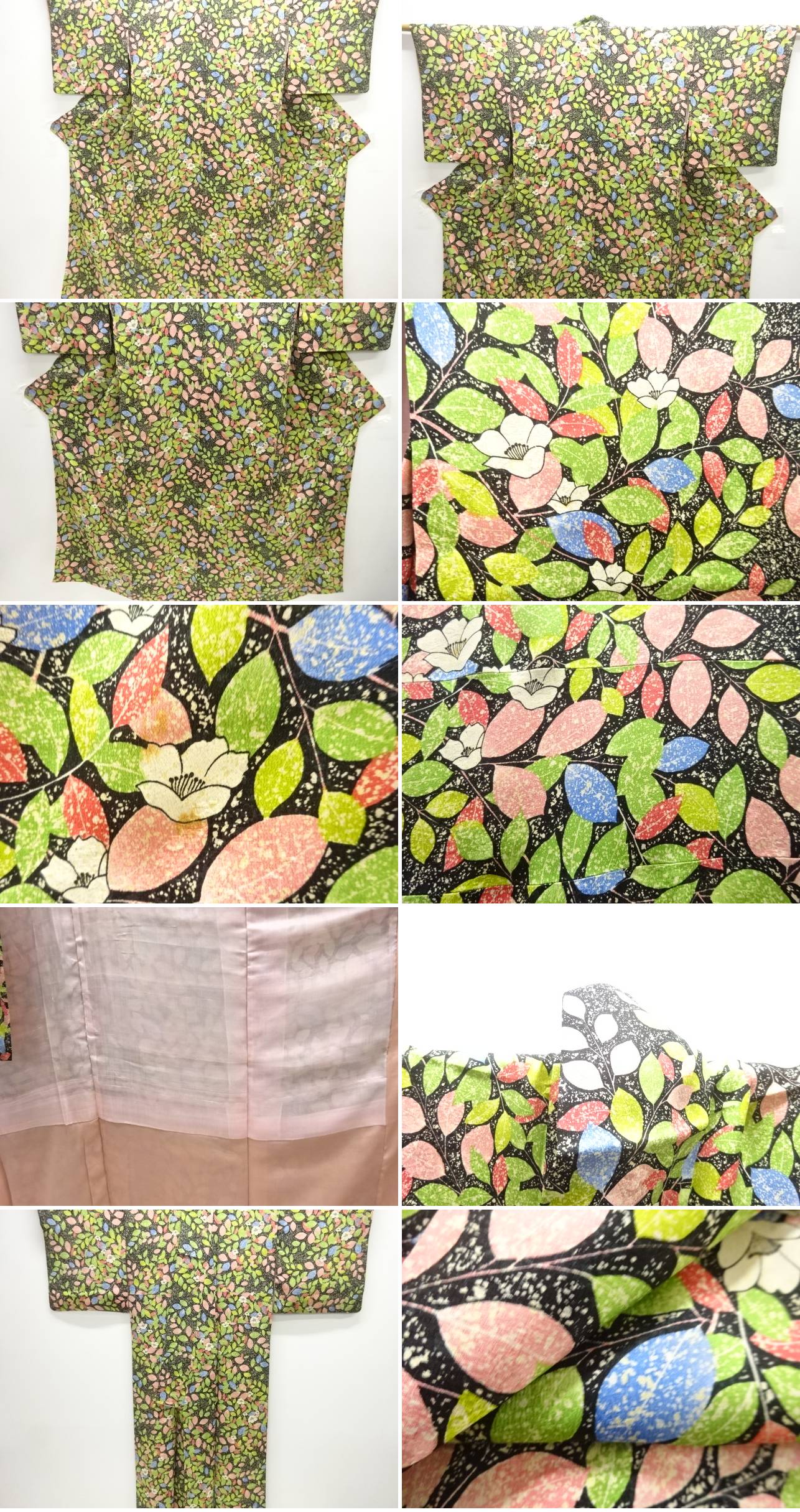 | お着物の状態をできる限りお伝えできるよう努力しておりますが、当店で出品の商品は全てアンティークになります。 一品一品丁寧に検品の上、出品させて頂いておりますが、稀に小さな見落としや、アンティーク特有の経年に伴う汚れや傷のある場合もございますので、アンティーク・中古品にご理解ある方のみのご入札をお願い致します。 寸法に関しましては、一品一品手作業での採寸であり、性質上生地の伸縮性もございますので、若干の誤差はご了承ください。 ごく稀にですが、樟脳やアンティーク特有の匂いがある場合がございます。 匂いに関しては、商品コメントには記載しておりませんので、ご理解の上ご入札下さい。 はぎれ商品につきましては、解き商品が多くなっております。 生地端に縫い糸の残りが多く残った状態での出品となります。 ご理解の上でのご入札と、ご自宅でのお手入れをお願い申し上げます。 | |