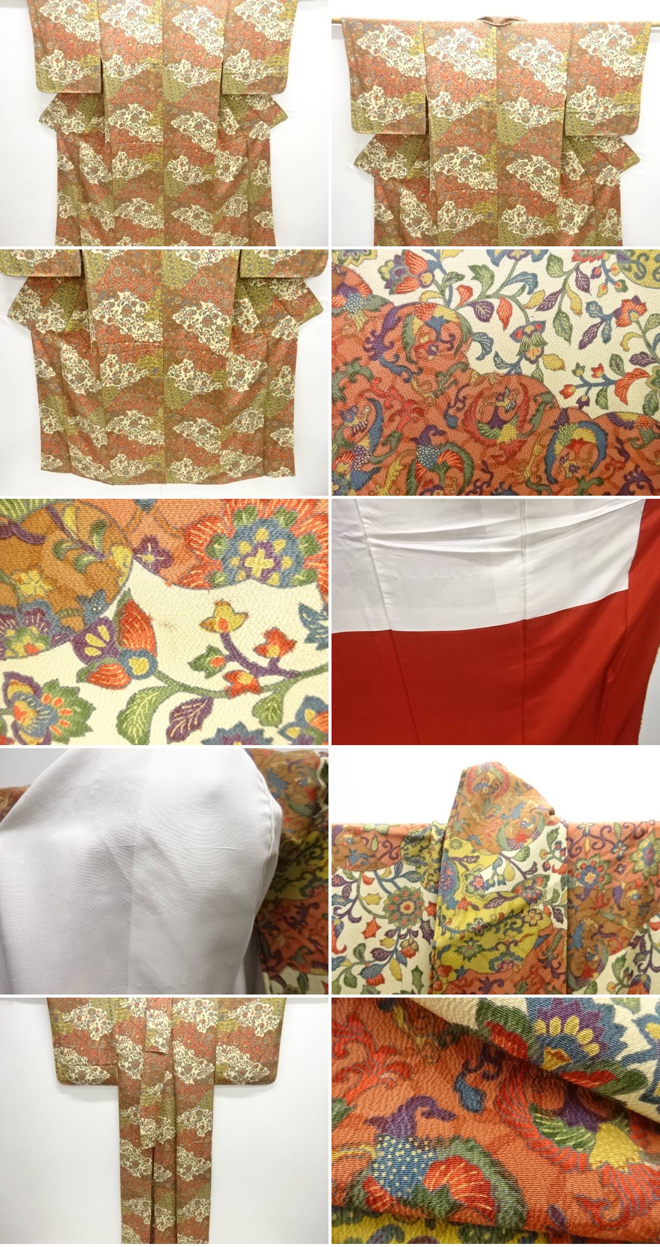 | お着物の状態をできる限りお伝えできるよう努力しておりますが、当店で出品の商品は全てアンティークになります。 一品一品丁寧に検品の上、出品させて頂いておりますが、稀に小さな見落としや、アンティーク特有の経年に伴う汚れや傷のある場合もございますので、アンティーク・中古品にご理解ある方のみのご入札をお願い致します。 寸法に関しましては、一品一品手作業での採寸であり、性質上生地の伸縮性もございますので、若干の誤差はご了承ください。 ごく稀にですが、樟脳やアンティーク特有の匂いがある場合がございます。 匂いに関しては、商品コメントには記載しておりませんので、ご理解の上ご入札下さい。 はぎれ商品につきましては、解き商品が多くなっております。 生地端に縫い糸の残りが多く残った状態での出品となります。 ご理解の上でのご入札と、ご自宅でのお手入れをお願い申し上げます。 | |