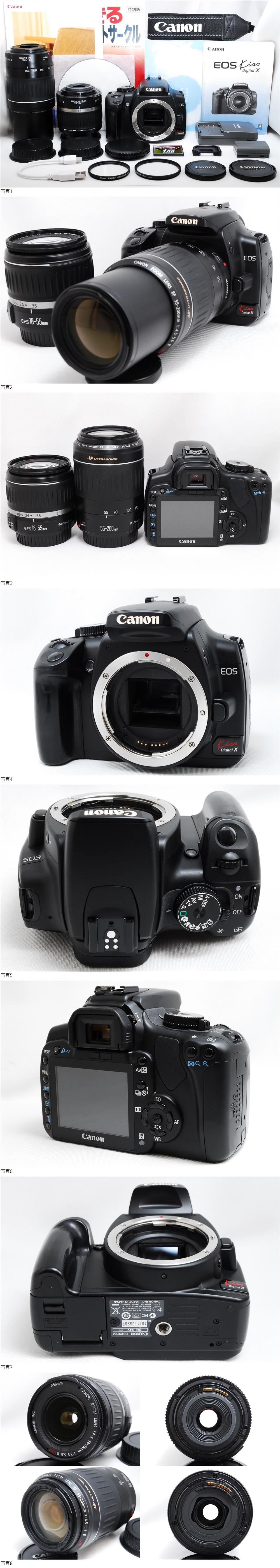 コンディション良好な!! CANON EOS Kiss Xが入荷しました~♪♪ 標準レンズ 18-55mm 、 超望遠レンズ 55-200mm Wレンズセット♪♪ 撮影に必要な バッテリー、充電器、CFカード、説明書、USBケーブル、Solution Disk など付属♪♪ 商品がお手元に届いたら即撮影を楽しむ事が出来ます!! お求めやすい即決価格で出品します!! 1個限定です。お見逃しなく!! ■本機の状態 外観に若干のスレありますが、全体的に綺麗な状態です。 ファインダーは小ごみ、ほこりもほとんどございません。 好調な状態を保っております。 各機能問題なく動作快調です。 ■レンズについて ◆標準レンズ 18-55mm CANON純正のショートズームレンズです。 軽くて取り回しが良く、USM機能搭載で優秀です。 ポートレート撮影、日常のスナップなど幅広く活躍します。 ◆超望遠レンズ 55-200mm 純正の軽量コンパクトな超望遠レンズです。 スポーツ観戦や遠くの景色を撮影するのに重宝します。 USM機構搭載で素早いピント合わせが可能です! レンズ内、埃の混入僅かで良好な状態です。 新品ですと高価なのでお得だと思いますし ZOOMも利くので扱いやすいレンズだと思います。 デジタル一眼レフの入門機として大人気のKiss Digital Xは、 高画質でありながら軽量・コンパクトで持ち運びもらくらく♪ 女性の手にもちょうどよく収まるサイズでとても扱いやすく、 後継機種に比べ、無駄な機能がなくシンプルな作りが今でも愛される 傑作機です!! 操作も簡単でダイヤルをオートモードにしてシャッターを切れば スマホよりワンランク上の綺麗な写真が簡単に撮影できます♪ 最新機種もいいですが、まずは実力派の人気中古で ガンガン使って楽しむのもよいと思います。 格安の中古良品をお探しの方は是非ご検討くださいませ☆ ■付属品 ・ボディ ・ボディキャップ ・アイピースキャップ ・バッテリー ・充電器 ・Canon EF-S18-55mm F3.5-5.6 Ⅱ USM /レンズキャップ前後 ・Canon EF55-200mm F4.5-5.6 Ⅱ USM /レンズキャップ前後 ・EOSストラップ ・CD-ROM (Solution Disk)※データ転送の際に必要 ・Canon My photo life ・キャノンフォットサークル ・USBケーブル ・説明書 ★特典付き★ ・CFカード 1GB ・レンズフィルター 2個 ※万一配送中の破損や、本説明文と著しい相違などがありました際は、 速やかに返品やご返金、または同等品との交換などの対応をさせていただきますので、下記のコメント欄をお目通しいただければと思います。 | |