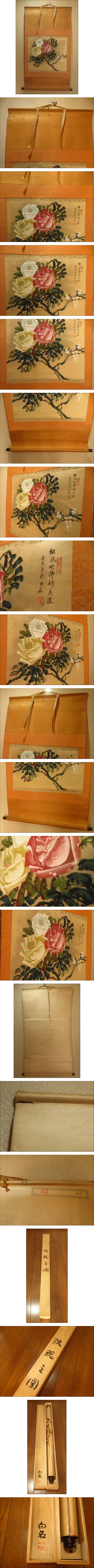 | 【模写】旧家整理品 玖瑰 薔薇 花画 中国画 中国画家 斉白石 掛け軸 掛軸 静物画 作家 在銘 箱 中国古玩 骨董品 古美術品【111】 | ||