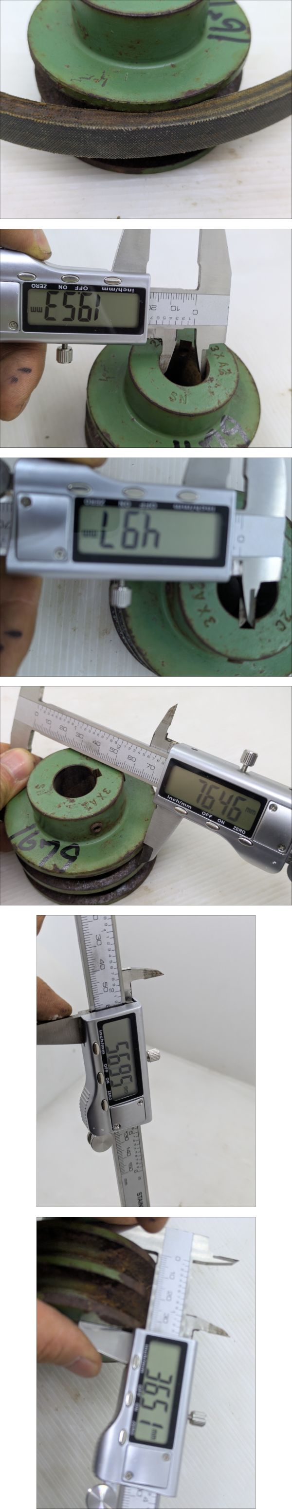 | ●●最後まで読んで下さい●●納得した上でご入札してください●● ●機械専門アカウントは**こ ち ら**です。 ●当方の別出品物を同時購入しても送料分安くなりません。 ●発送料金は入札ボタン付近にあり、沖縄、北海道、離島以外一律です。 ●塩尻市から発送します。 ●離島発送はできない場所がございますので、事前にお問い合わせください。 ●発送日は月、水、金、日です。急ぎの場合はご連絡をお願いします。 ------------------------------------------------------------------------------------------- ●2連のプーリーです。 ●Aベルトです。 ●軸 径:約Φ20mm ●鍵 幅:約5mm ●プーリー外径:約Φ76mm ●全体 厚さ:約56mm ●ベルト部 厚さ:約36mm ●書いたインクは消さずに発送します。 ●素人寸法のため、測定誤差があります。 ●中古品のため、サビや汚れがあります。 ●錆は各自で取り除いてください。 ●現状写真の通りのまま送ります。 ------------------------------------------------------------------------------------------- ●下の方にも画像がございます。※たまに写真の枚数が不足していて画像がない場合があります。 ●落札後、ご指定配達の時間帯がある場合はあらかじめご連絡してください。 | |||