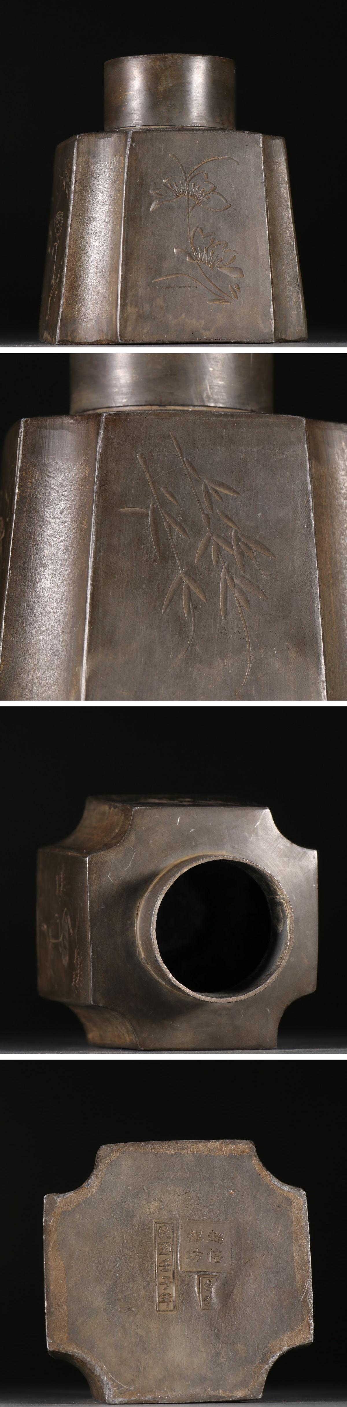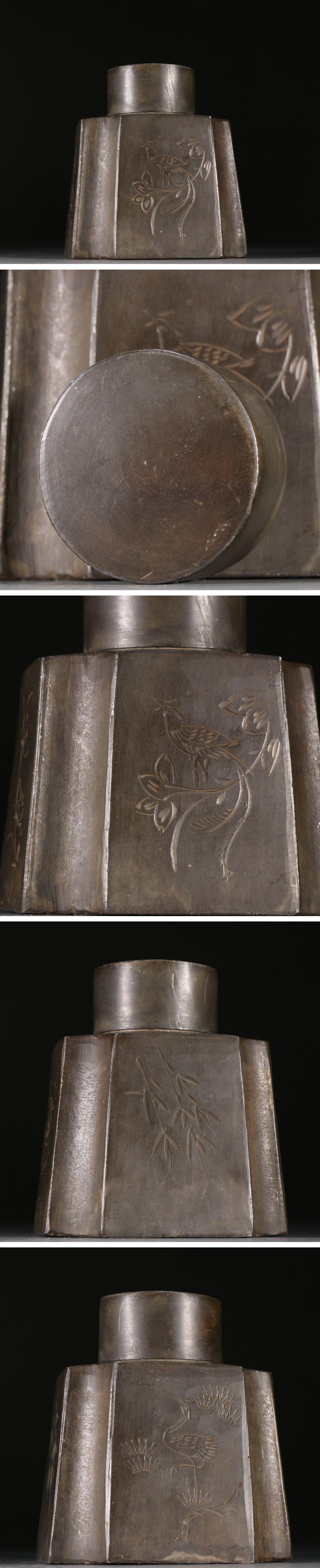 【清】関西某オークション購入 中国伝来 時代物 本錫 花鳥紋茶入 当時物 時代コレクション7L12-AM5