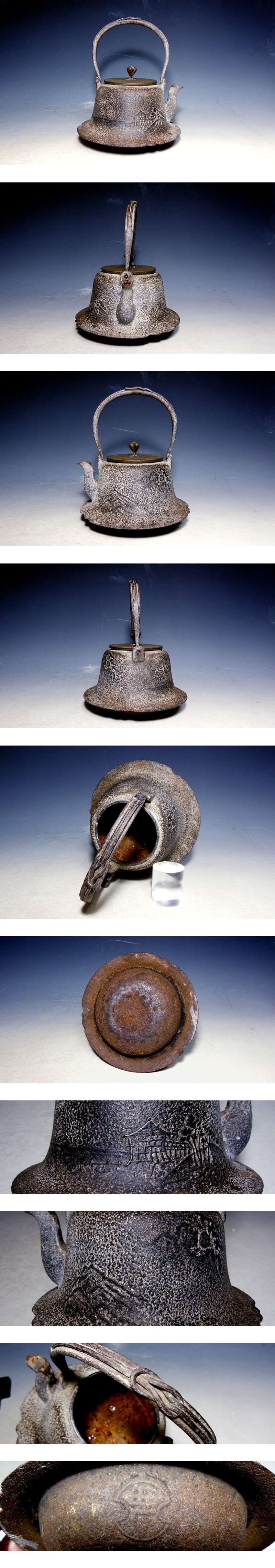 | 【 金龍堂 富士形楼閣山水文鉄瓶 在銘 】 | |