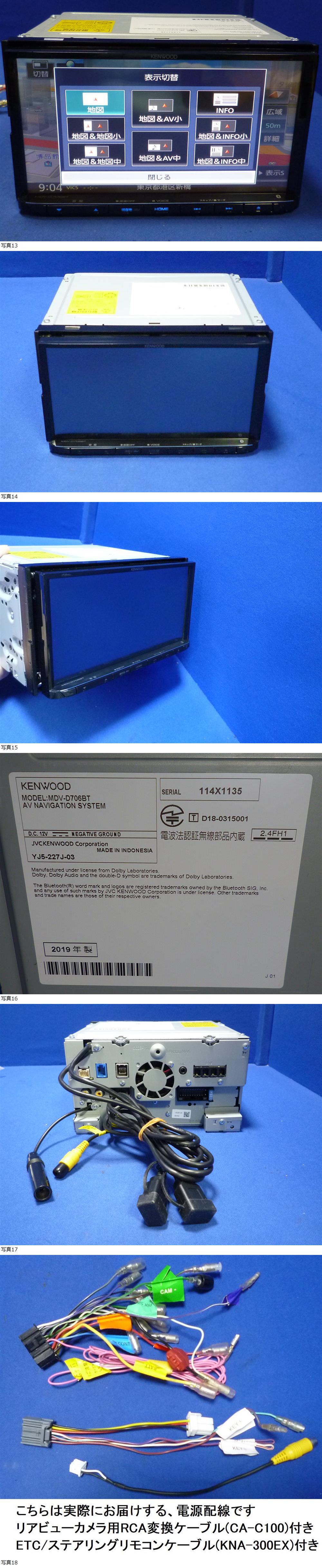 | 商品紹介 | ★★★地図データ最新版に更新済★★★ 地図データ 最新版・2025年秋9月リリース版(2025年01版) ファームウェア 最新版(4.0.4619.5500) 開通予定情報 最新版(2026年第01月版) メモリーナビ SDナビ KENWOOD ケンウッド MDV-D706BT シリアルNO.114X1135 2019年製 取り外すまで問題なく使用出来ていた物になります。 出品に辺り、卓上電源にて下記動作確認・写真撮影しております。 (写真は一部流用してます。電源配線等、形状が異なる場合がございます) 写真2枚目~6枚目と下記写真はお届けするナビの現物写真です。 ボタン部分の文字剥げもなく綺麗な方だと思います♪ 液晶画面、1か所5mm程、小傷がありますが 何か表示していると分からない位です。 フレーム上部に傷があります。 タッチパネルズレありません。 ・ナビ基本操作:OK ・地デジフルセグ/ワンセグTV視聴:OK ・USB、音楽ファイル再生:OK ・iPhoneケーブルでUSB接続、iphone音楽ファイル再生:OK ・SDカード、音楽ファイル再生:OK ・DVD再生:OK ・CD再生:OK ・GPS受信:OK ・スピーカーからの音出し:OK ・Bluetooth接続、スマホ内音楽再生確認:OK ・マイク接続、ハンズフリー通話確認:OK ・ラジオ受信:OK ・パネル開閉/角度調整:OK ・ユーザー設定の初期化:済み お届けは下記になります。 カーナビ本体、 電源配線(走行中にDVD、TVが見れるような配線加工されてました)、 GPSアンテナ、 フルセグ地デジアンテナコード(エレメント接続部分も問題ありません)×4、 新品フィルムアンテナ(両面テープ付き)×4、 マイク、 USBコード(本体直付け)×2本、 リアビューカメラ用RCA変換ケーブル(CA-C100)、 ETC/ステアリングリモコンケーブル(KNA-300EX)、 になります。 B-CASカードレスタイプです。 問題なくフルセグ受信、視聴出来ております♪ 本体背面に・・・ ケンウッド製リアビューカメラ「CMOS-C230/C230W」入力や、 車両アンテナからの入力、 リアモニターへの映像出力、 ドライブレコーダー(DRV-N530等)からの映像入力、等が有ります♪ 汎用バックカメラを接続する場合は、 汎用RCA変換ケーブル(CA-C100)が必要です。 ナビ製品詳細ページ ←クリックしてご覧頂けます ナビプレスリリース ←クリックしてご覧頂けます 取扱説明書 ←クリックしてご覧頂けます 取付説明書 ←クリックしてご覧頂けます 比較的綺麗な方だと思いますが、こちらは中古品になりますので 年相応の使用感や小傷、汚れ等ございます。 出品に辺り写真に写っている動作確認は確認出来ておりますが 短時間での確認となり、その他全ての動作確認を出来ている訳ではございません。 保証は有りませんので、その点ご了承の上、ご入札願います。 また電源配線など、途中でカットしている場合もございますし、 加工している場合もございます。 必要に応じて、取付の際、加工が必要な事もございます。 配線コード関係はビニールテープ等の粘着が残っている場合もございます。 ツメ等もカケが有るかもしれません。 いずれも動作には支障ありませんし、取付業者は手慣れている事だと思います。 配線、コード関係はあくまでおまけとお考え頂き ご理解の上、ご入札願います。 取付方法、ご使用方法によって破損、故障する場合も有りますし、 同商品の一部差し替えによる返品防止の為、 ご返品、ご返金は一切出来かねます。何卒ご理解願います。 万一、運送トラブル等で破損の際は、運送保険にてご対応願います。 ------------------------------------------------- 送料一律1500円 (北海道、沖縄は送料2500円になります) お支払は落札価格+送料になります。 当方お休みを除き14時までにかんたん決済受付確認出来ましたら 即日発送致します。 |