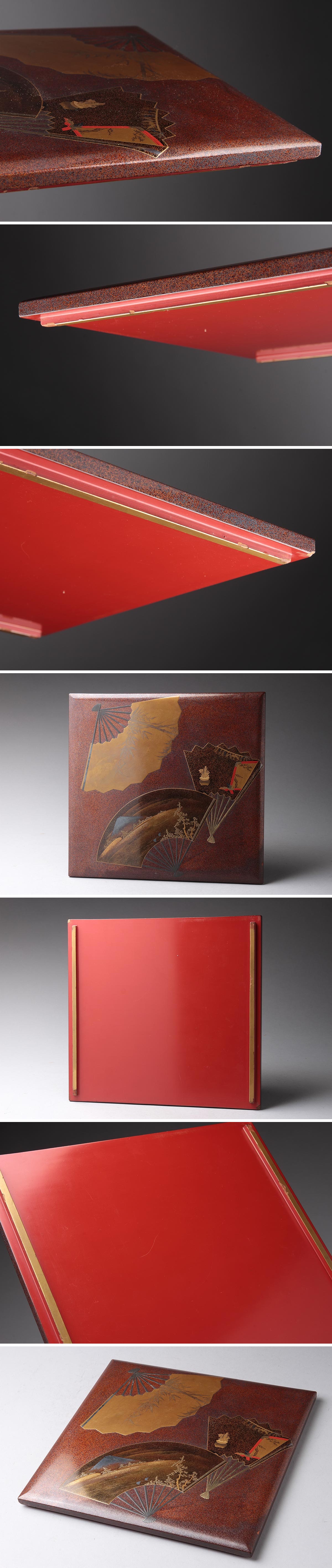 | ◆ 時代蒔絵 金梨地 裏朱 扇面蒔絵蓋・重箱用 蒔絵蓋 漆工芸 古美術 ◆