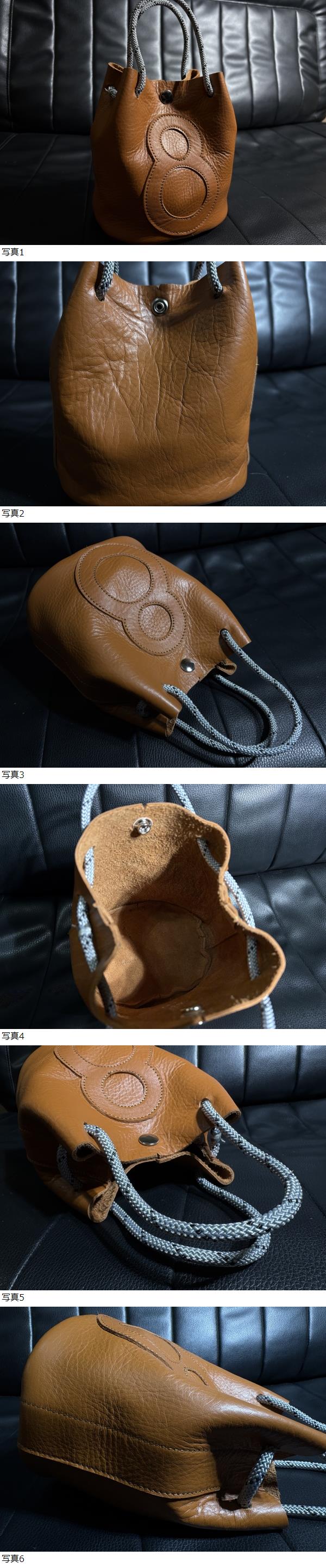 | ハンドメイド☆5☆抜群のテリ感 オイルドナチュラルシボクロム革☆巾着バッグ ☆男女兼用☆持手:太パラコード☆ホック付 | |