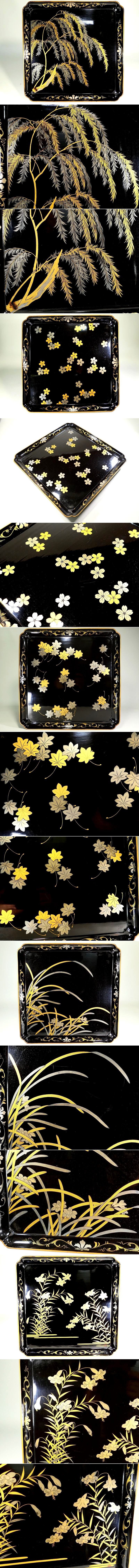 | 商品説明 | ~寸法~ 縦 約 32.4cm×横 約 32.4cm×高さ 約 3.8cm 黒漆塗りに栄える 図変わりの多様な花の金銀蒔絵が施された 生まれの良さそうな一品です。 懐石やお茶会に お部屋やお店のディスプレイにいかがでしょうか。 この機会に是非手に入れて下さい。 共箱がございます。 大切にして頂ける方の元へ届けば幸いでございます。 ~状態~ 全体的に見て状態は概ね良好です。 経年による多少のスレや小キズ、汚れくらいはございますので 画像にてご確認下さい。 許容範囲内の時代傷みはご理解下さい。 |