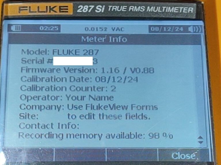 フルーク 287Si 4桁半マルチメータ 校正・調整・書類付