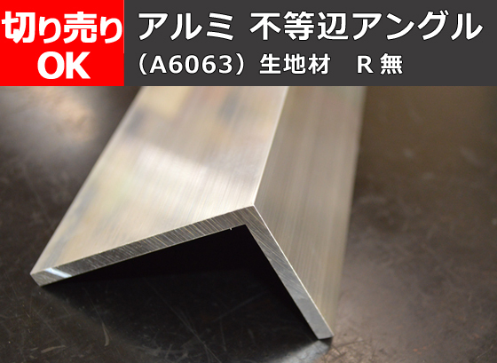 アルミ製不等辺アングル・L形(R無し)(材質6063)の生地材、