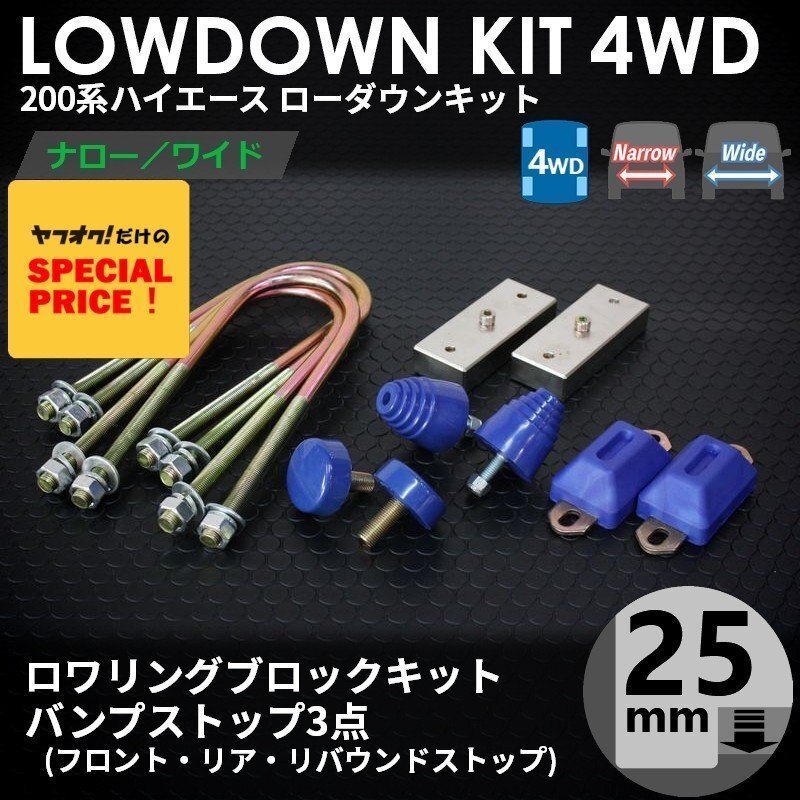 | 商品説明 | 200系ハイエース4WD ナローボディ(標準ボディ)/ワイドボディに対応します。 ロワリングブロック25mm(1インチ)とバンプストップ3点がセットになったお得なキットになります。 ※3型、4型以降のディスチャージヘッドランプ、LEDヘッドランプ車は1000円UPで オートレベライザーアジャストキットを追加可能です。 【キット内容】 <ロワリングブロックキット25mm> ※強度試験成績書付属※ 200系専用設計スチール製メッキ仕上げになっています。 Uボルトは純正同様13mmの太さを採用しています。 25~75mmまで対応のUボルトですので余ったボルトはカットしてご使用ください。 <バンプストップ3点セット> フロント薄型バンプストップ: 熱可塑性ウレタン樹脂(TPU)パンデックス採用、厚みが20mmになります。 純正の分厚いバンプストップではローダウン時に必ずバンプタッチします。 薄型に交換することでアームの作動範囲を広げ、不快なバンプタッチを軽減。 乗り心地を向上させます。 リバウンドストップ: 熱可塑性ウレタン樹脂(TPU)パンデックス採用、厚みが60mmになります。 トーションバーを緩めた際に発生するアンカーアームの遊びを防止します。 また、伸び側のアッパーアームとの可動域を制限し、ロール(車体左右の揺れ)を抑えます。 カットして高さの変更ができ、ローダウン量に合わせた調整が可能です。 リア薄型バンプストップ: 熱可塑性ウレタン樹脂(TPU)パンデックス採用、厚みが40mmになります。 純正の分厚いバンプストップではローダウン時に必ずバンプタッチします。 薄型に交換することでリアアクスルとのクリアランスを確保し、不快なバンプタッチを軽減。 また、リアはローダウン量と積載状況によってバンプタッチが想定されます。 従来品よりも硬度を下げる改良を行い、バンプタッチ時の衝撃を軽減させ、乗り心地を向上させました。 ※注意※ ジャストロー車両はタイヤハウスがフロアによって低くなっていますので、 ダウン量やタイヤサイズ、積載の影響によって走行不可となる可能性がございます。 実際の車両状態を必ずご確認のうえご判断ください。 |