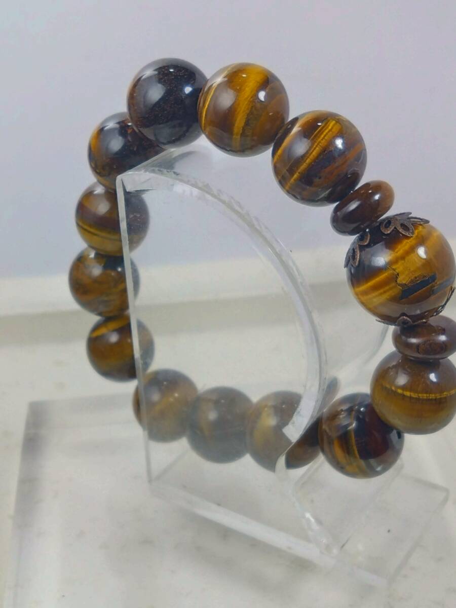 大粒タイガーアイ18mm玉1石を中心にボタン2石 約16mm玉12石 モビロンゴム使用ブレスレットのご紹介です 在庫処分特価にしていますが新品です 内径約17.5cm 外径約27.5cmとインパクト有りのブレスレットが今ならお手軽に手に入ります 南アフリカ産天然タイガーアイはクロシドライトと石英が混ざり合い金褐色か黄褐色に変化して出来た鉱石の事で綺麗な光線反応で虎の目のようになっているのが特長です 日本では金運として有名になりましたが古代ローマ人はあまりにも美しく神々しいので護符として使用されていたと言われています 是非この機会に金運アップや仕事運アップのタイガーアイを使ってみては如何ですか | 出价者 | 信用 | 价格 | 时间 |