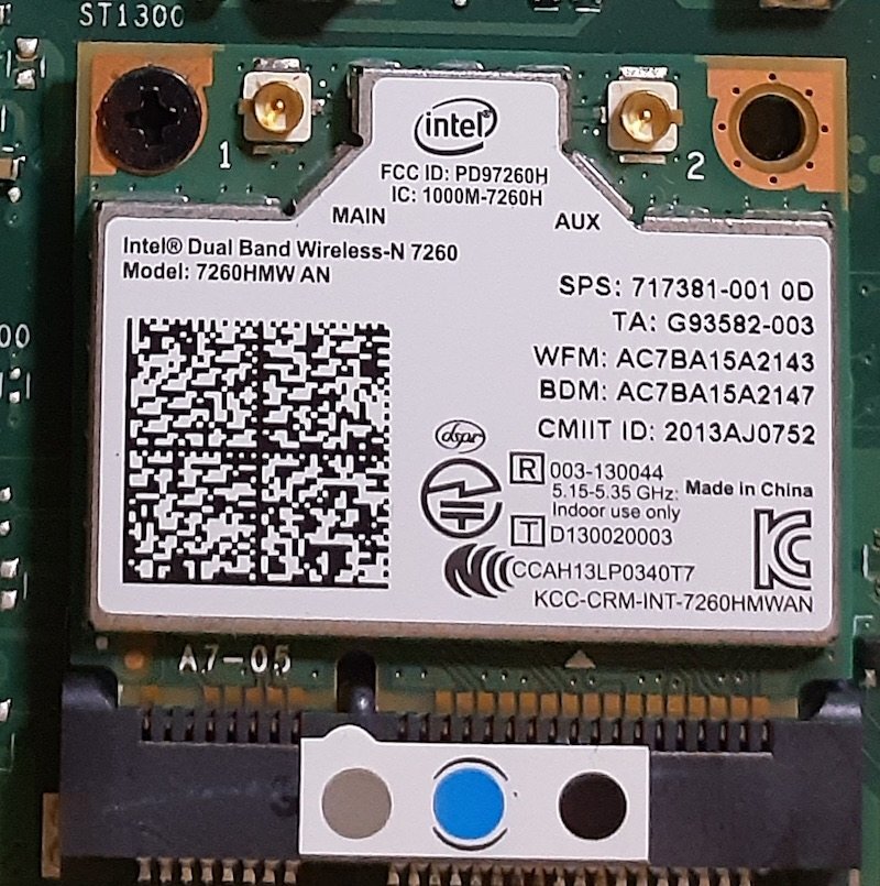 LIFEBOOK UH55/Mのマザーボードです。無線LANカード(Intel Dual Band Wireless-N7260 7260HMW AN)、冷却ファン、電源コネクタなどがついています。