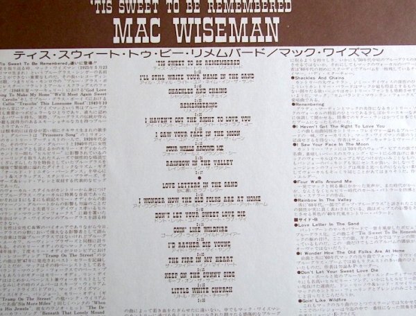 【LP】マック・ワイズマン ティス・スウィート・トゥ・ビー・リメムバード| 出价者 | 信用 | 价格 | 时间 |