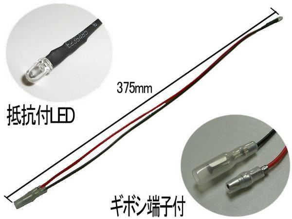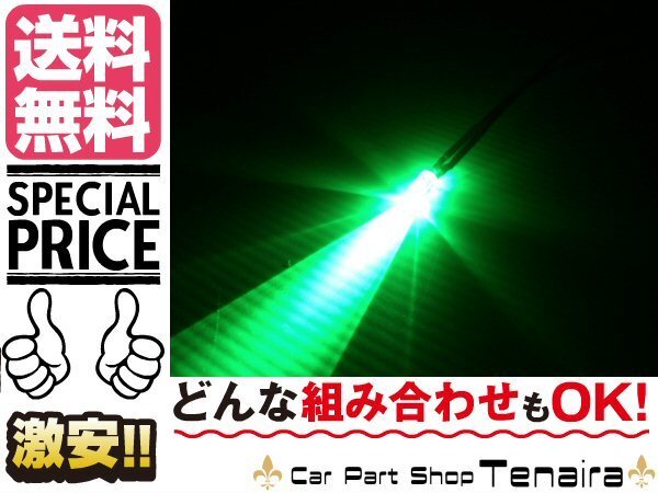 ■メール便送料無料!■抵抗器内蔵+端子付LED砲弾型Ф5mm 緑色/12V抵抗付 30個セット/12V車用 | |||