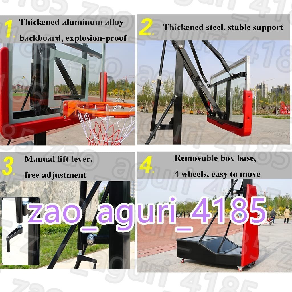 この高さ調節可能なバスケットボールフープシステムは、バスケットボールのスキルを練習し、家族や友人と遊ぶためのプロフェッショナルな方法を提供します。 45cm / 18インチの標準リム バスケットボールのリムは45cm / 18インチの標準フープで、毎日のトレーニングをより良く行うのに役立ちます 頑丈なフレーム バスケットボールフープの頑丈で頑丈なフレームは、バスケットボールシステムの安定性と信頼性を保証します。 頑丈なフレームとスプリング衝撃吸収システム バスケットボールのリムは、強力な耐圧性と高い粘り強さを備えた高品質のスチールで作られています。 安定していて安全 バスケットボールフープには、ラックをより安定して安全にするために水や砂を入れることができる大きな加重ベースがあり、2つの車輪がラックの良好な移動性を保証します。 調節可能 バスケットボールスタンドは、伸縮ポールを235cmから305cmまで簡単に調整できます。 移動が簡単 ポータブルバスケットボールフープには前輪が内蔵されており、移動できます。バスケットボールシステムを傾けてスライドさせ、ポータブルバスケットボールフープをどこにでも移動できます パッケージを含む バスケットボールスタンド*1 安全上の注意: 1: 安全のため、スタンドに登らないでください。 2: バスケットボールをプレイする前に、必ずベースに水または砂を入れてください。 3: 寒い天候では水を入れないでください。凍った水はプラスチックベースを損傷します。
